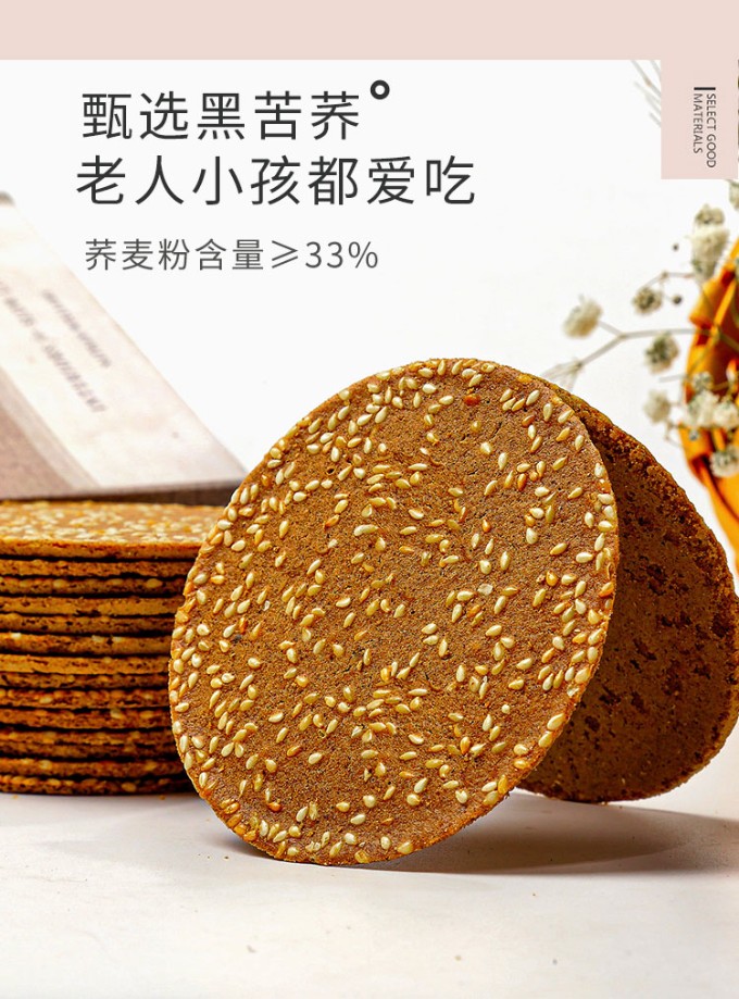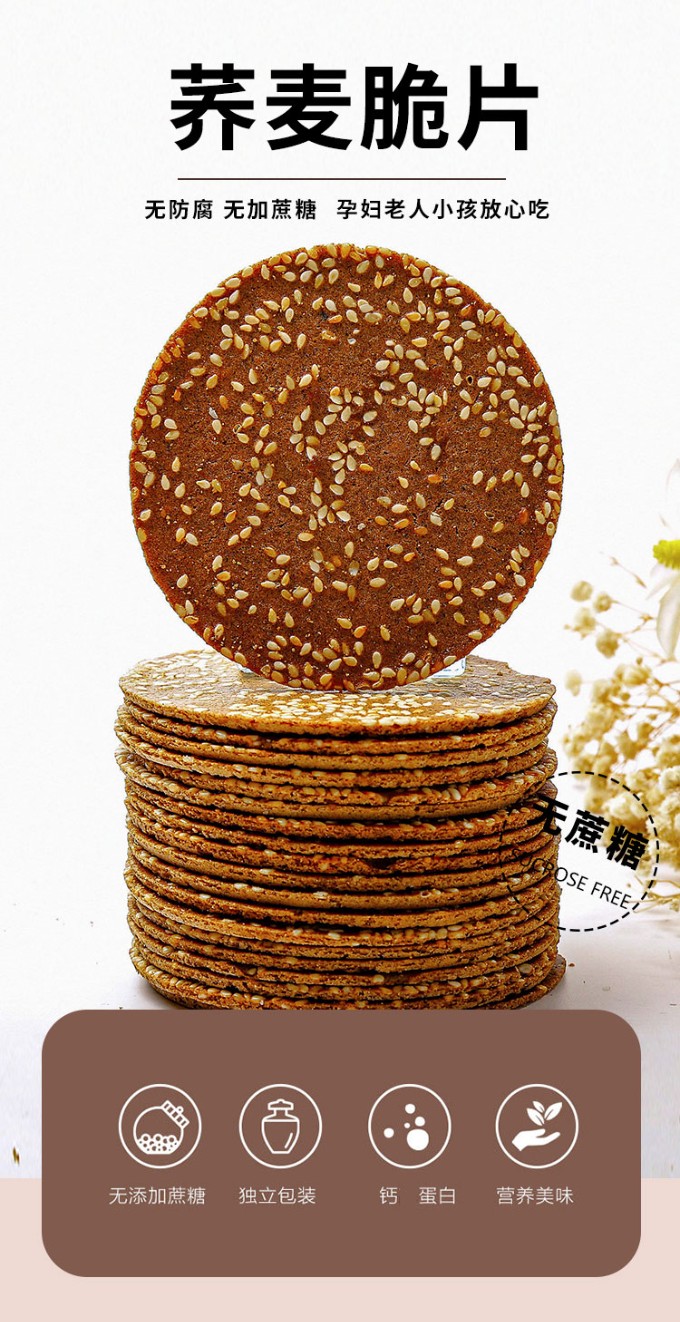 无蔗糖荞麦薄脆芝麻饼干无糖精粗粮零食整箱早餐代餐小薄饼